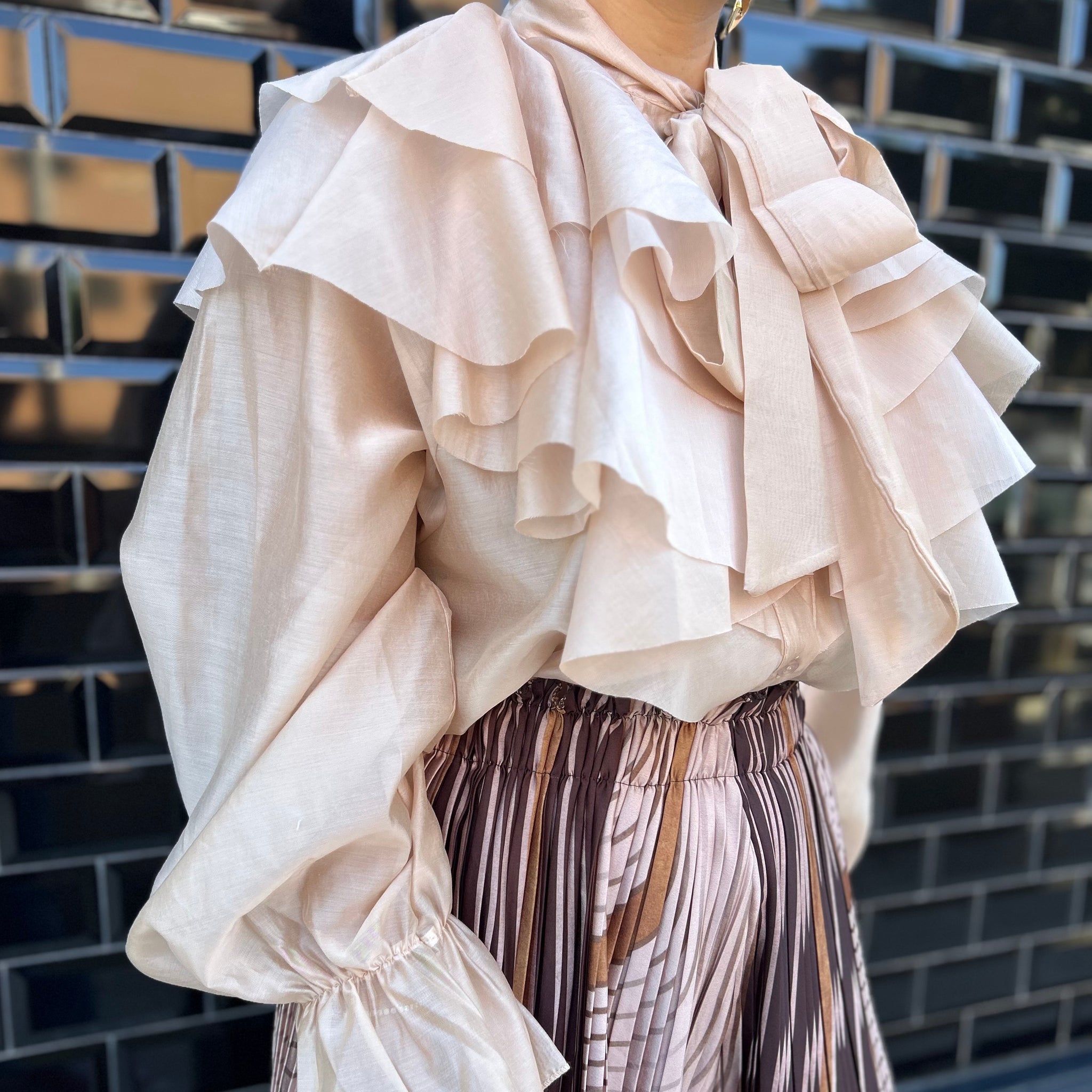 Blusa de volantes con lazo de talla única.