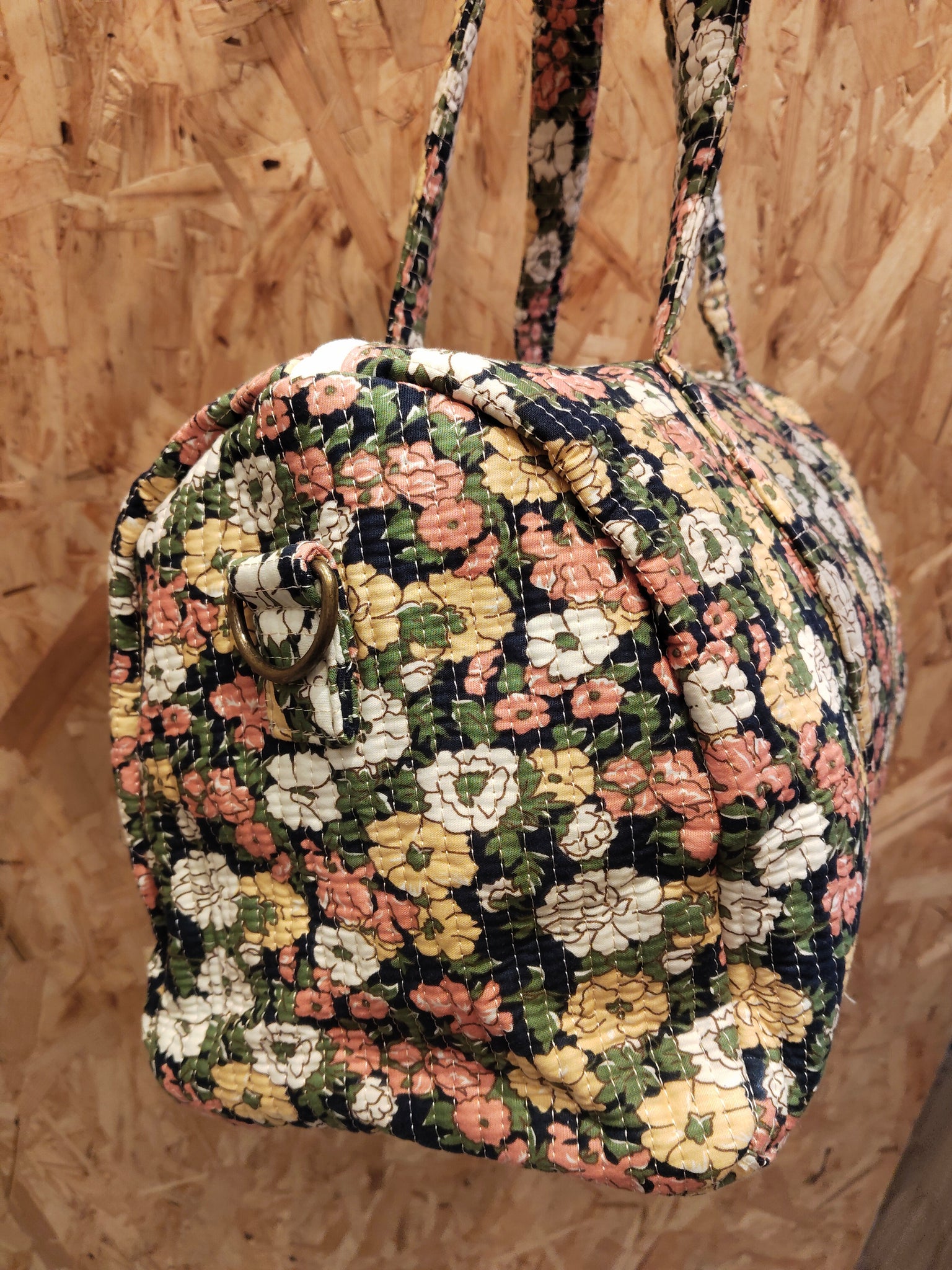 BOLSA  MEDIANA ESTAMPADA CON FONDO AZUL MARINO FLORES