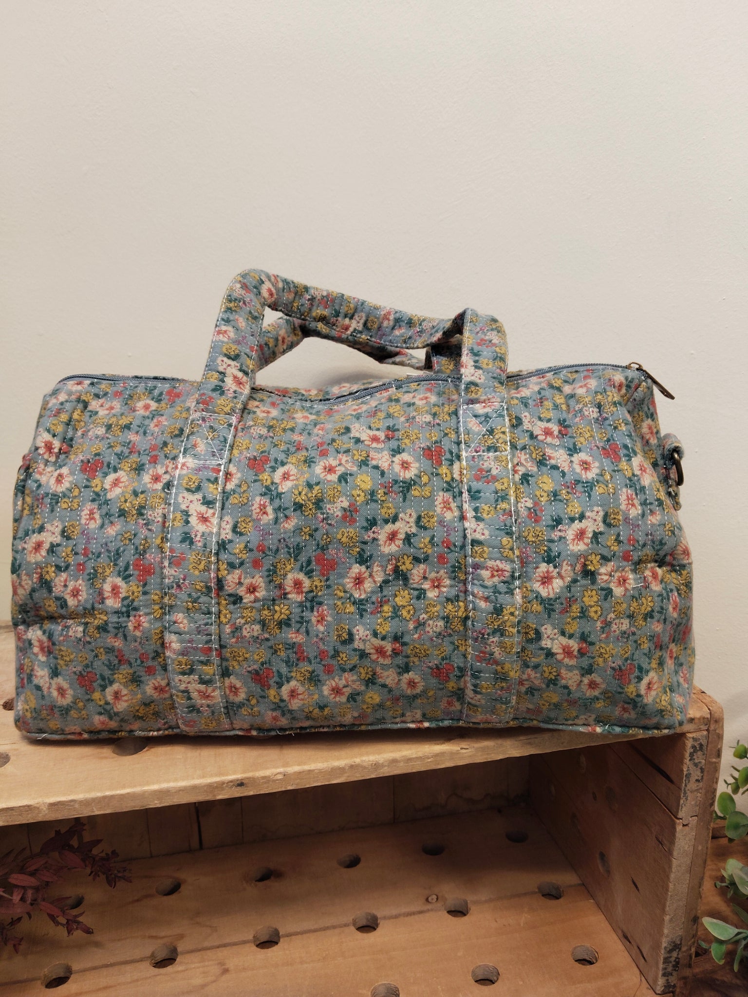 BOLSA MEDIANA ESTAMPADA FONDO GRIS FLORES