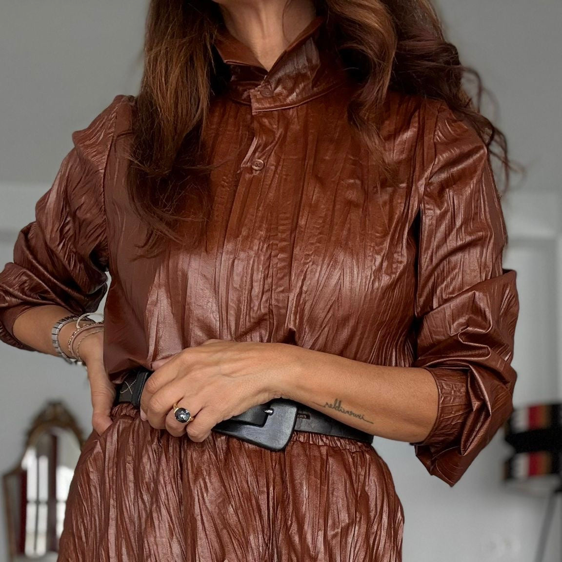 Modelo de talla única. Válido para talla 36, 38, 40 aproximadamente. De contorno de sisa mide 102 centímetros aproximadamente y de larga mide 63 centímetros aproximadamente.