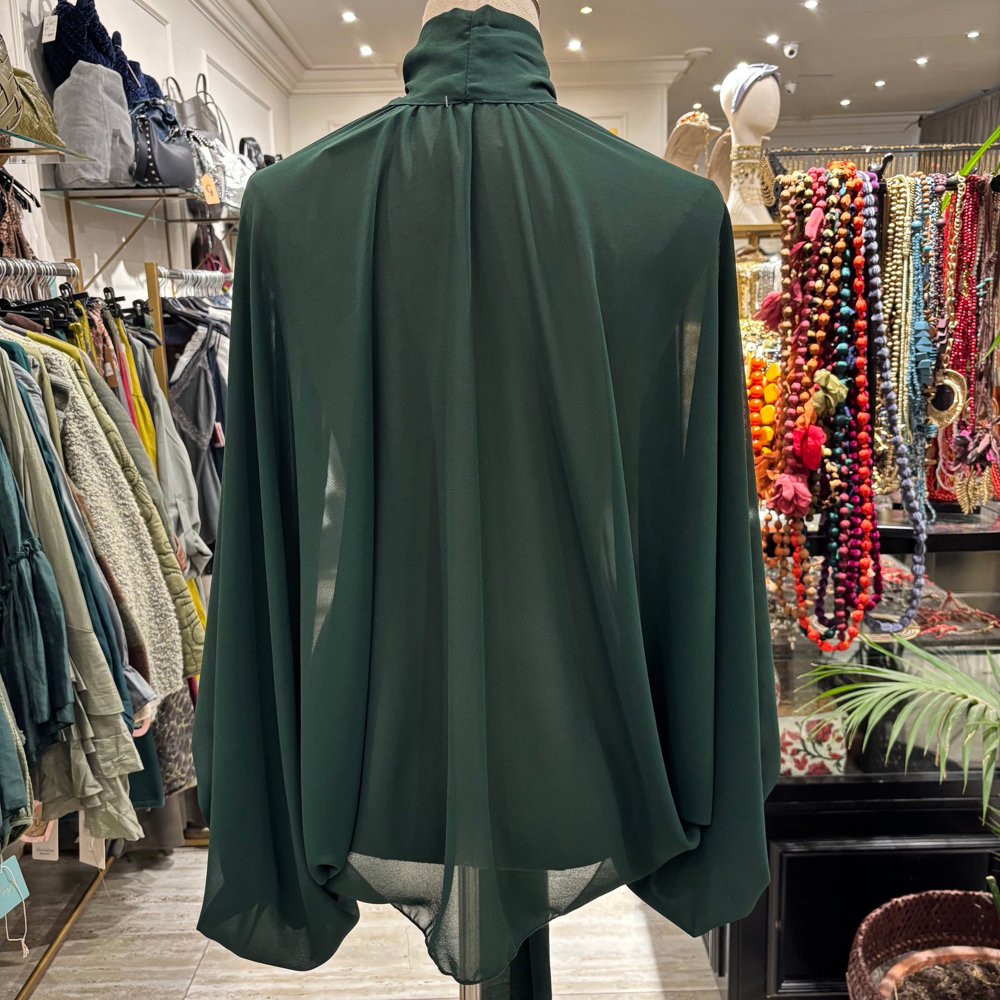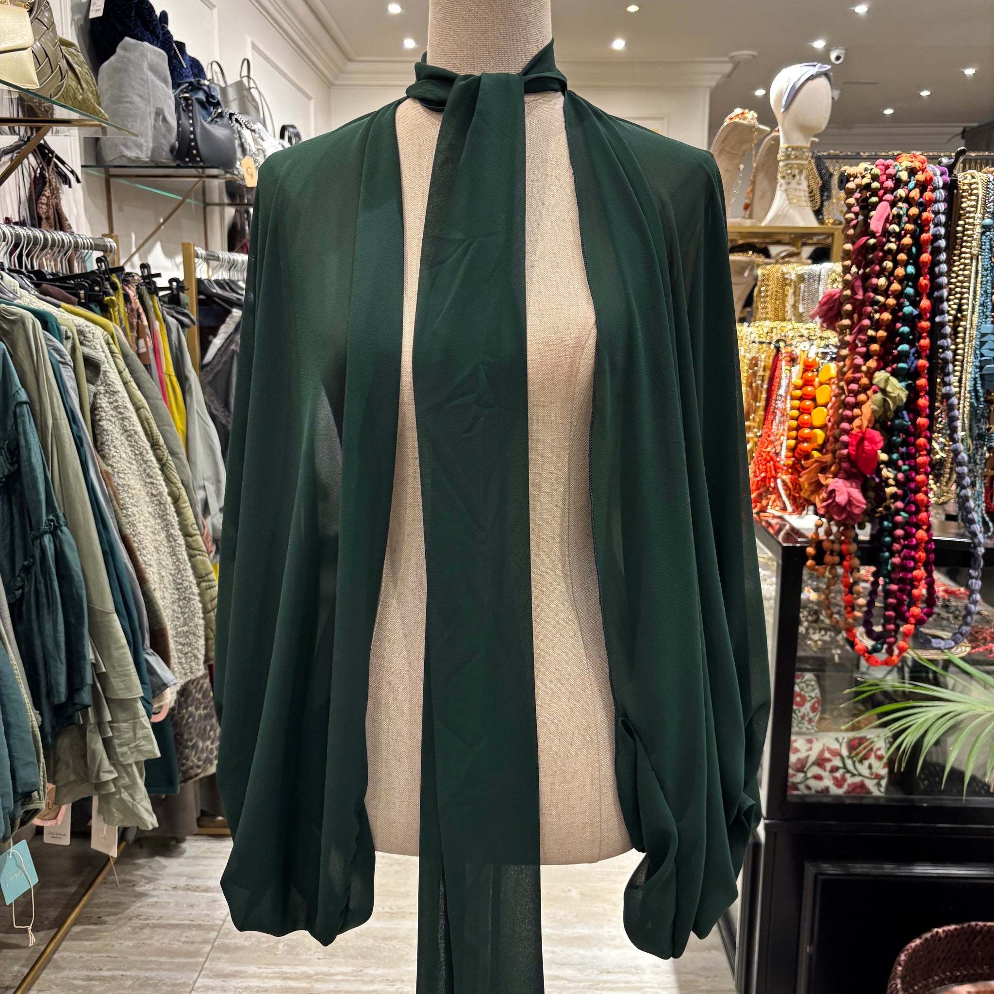 Capa de gasa con mangas y lazada.