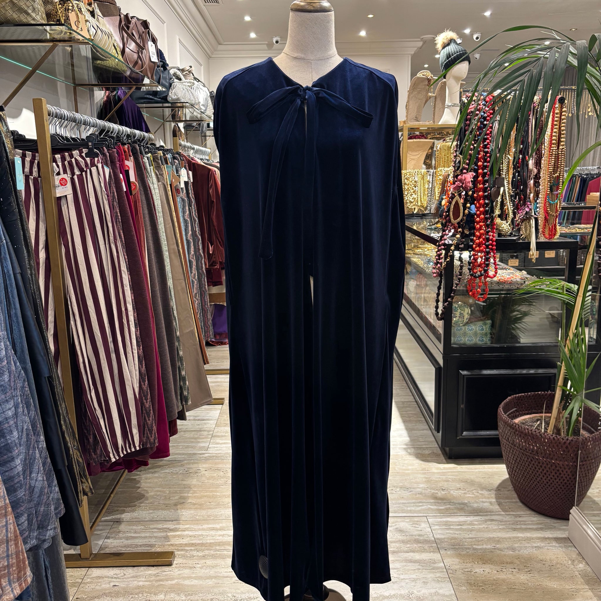 Capa larga de terciopelo en color azul marino , talla única.