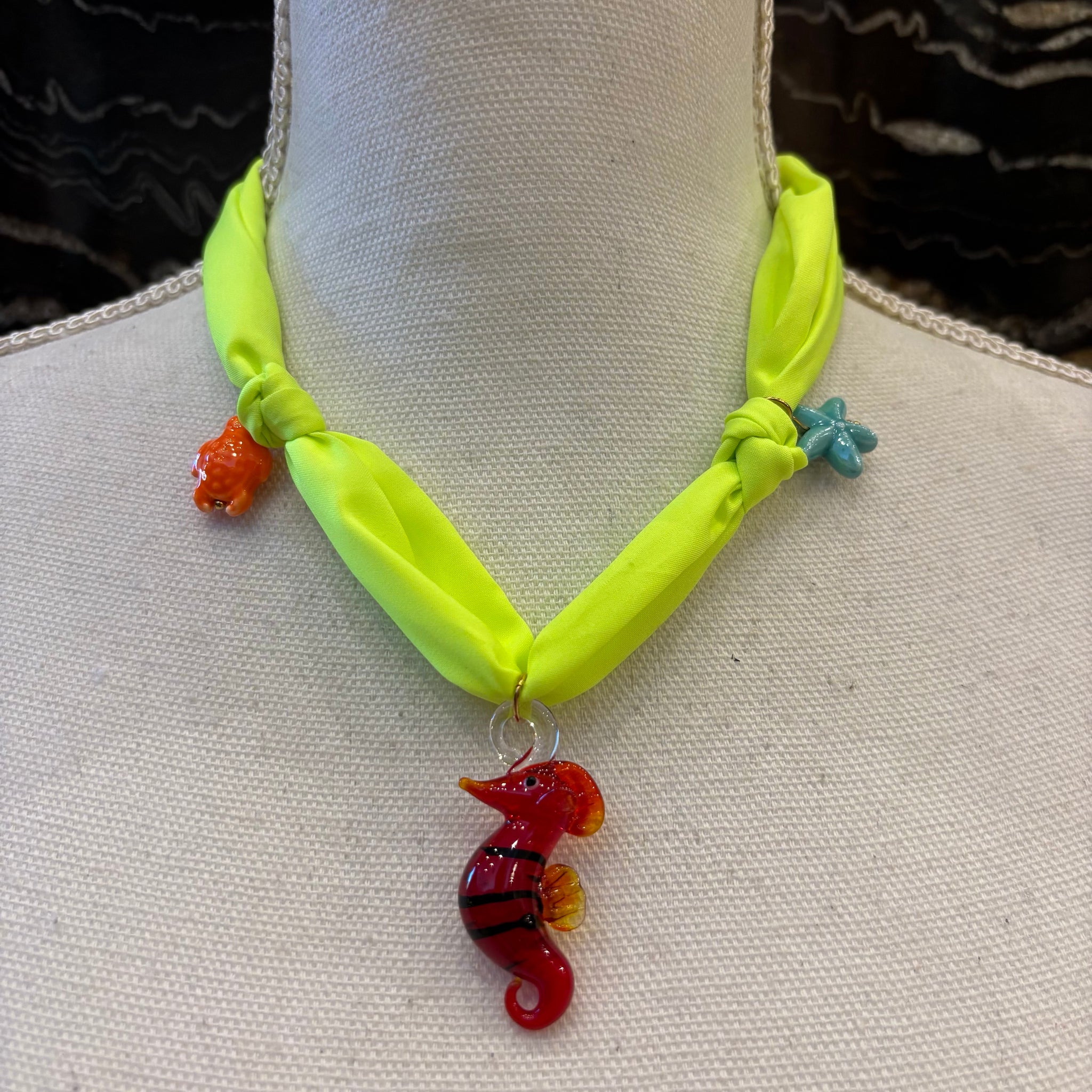 COLLAR TELA VERDE LIMA COLGANTE BICOLOR