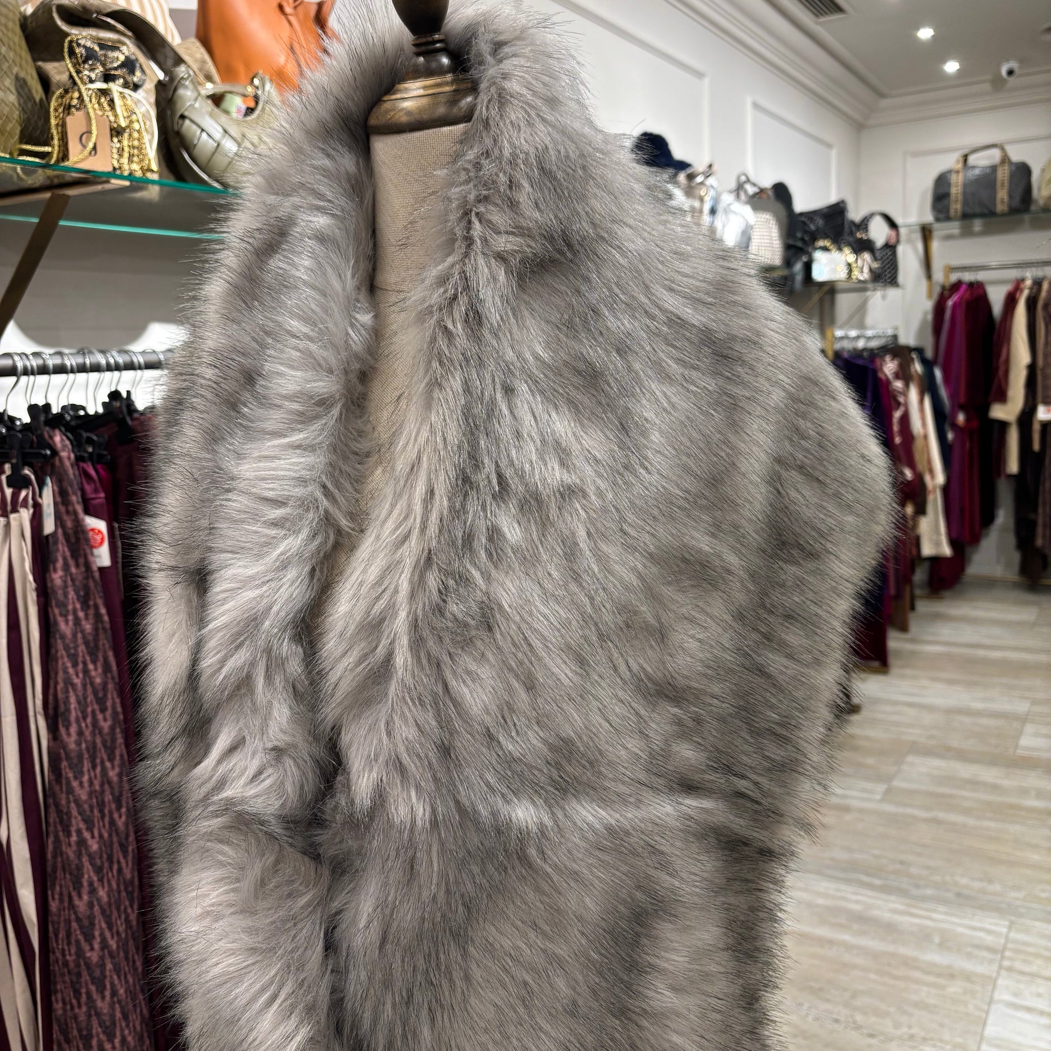 ESTOLA DE INVITADA DE PELO SINTETICO, MEDIDAS DE LARGO 186 cm Y DE ANCHO 29 cm.