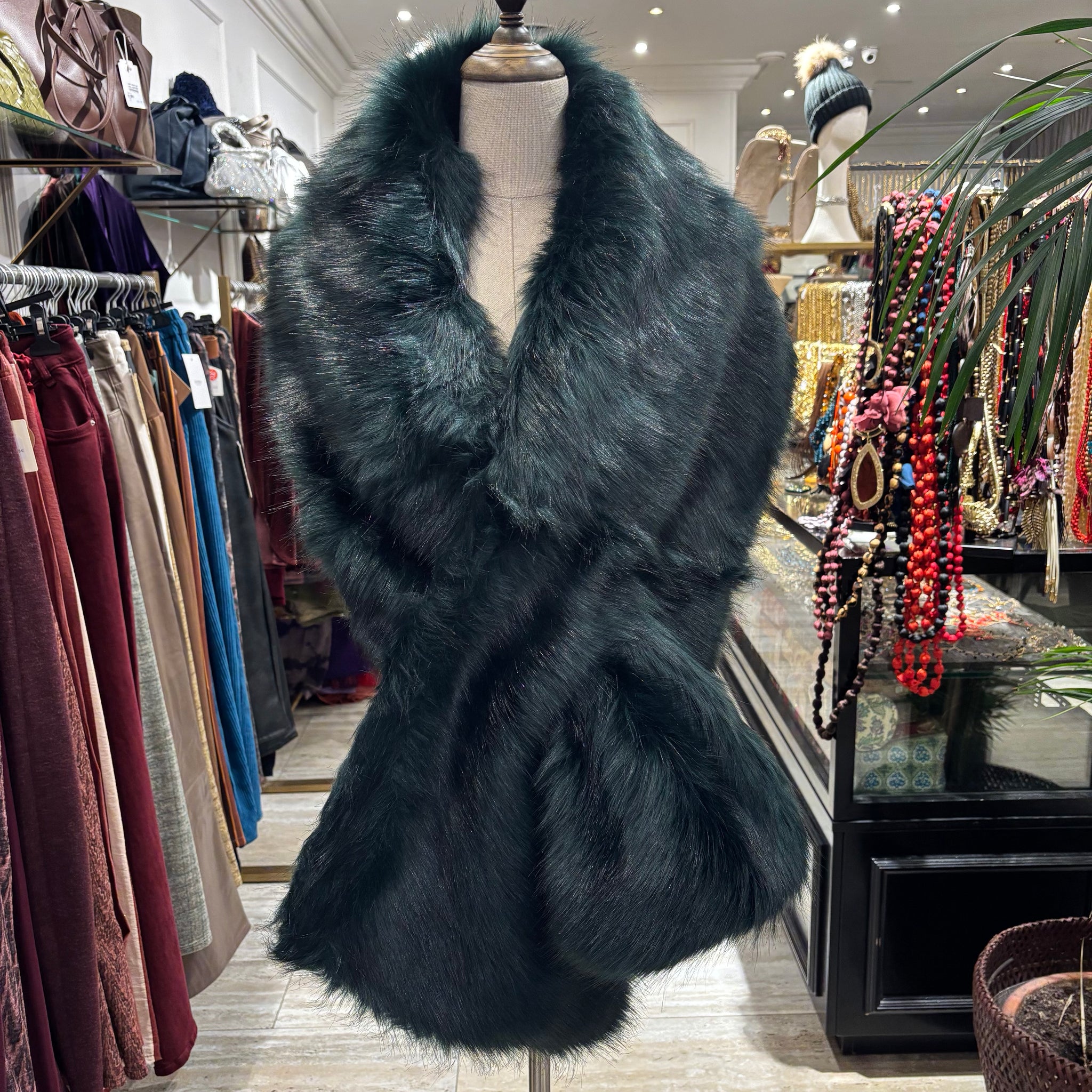 ESTOLA DE INVITADA DE PELO SINTETICO, MEDIDAS DE LARGO 186 cm Y DE ANCHO 29 cm.