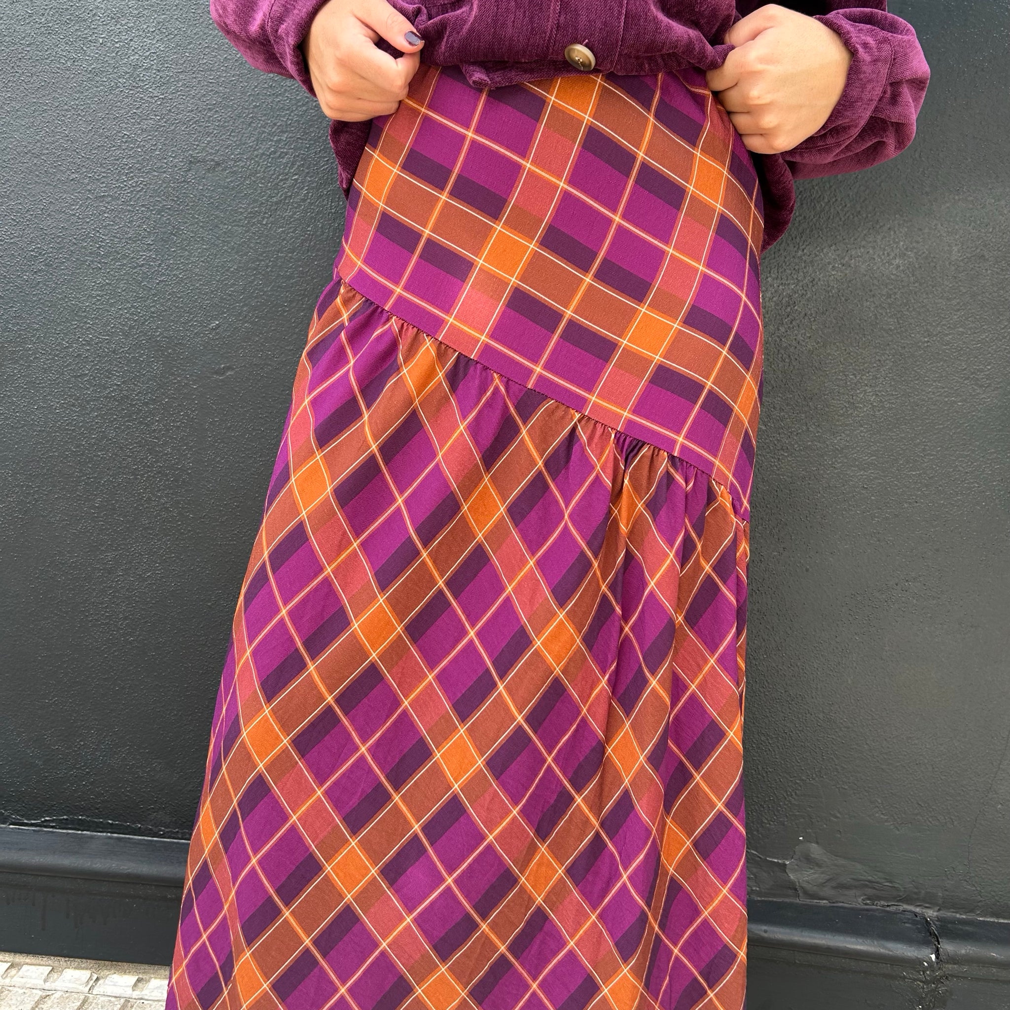 Falda contorno de cintura SIN ESTIRAR 68 cm, contorno de cintura ESTIRADO 84 cm y largo 95 cm ( aproximadamente).
