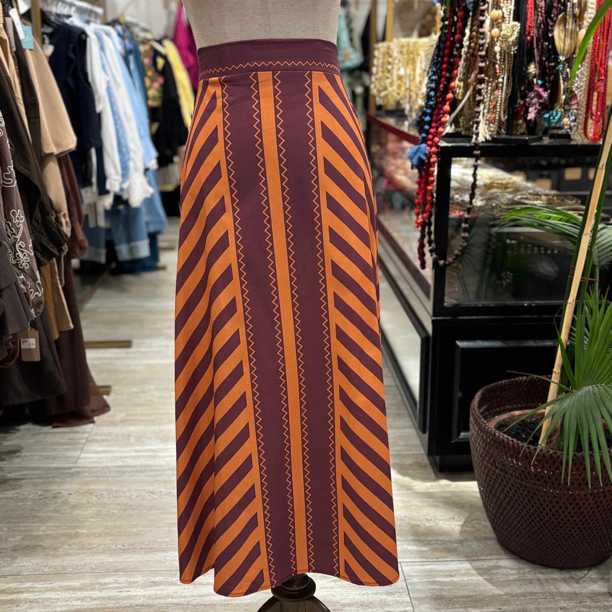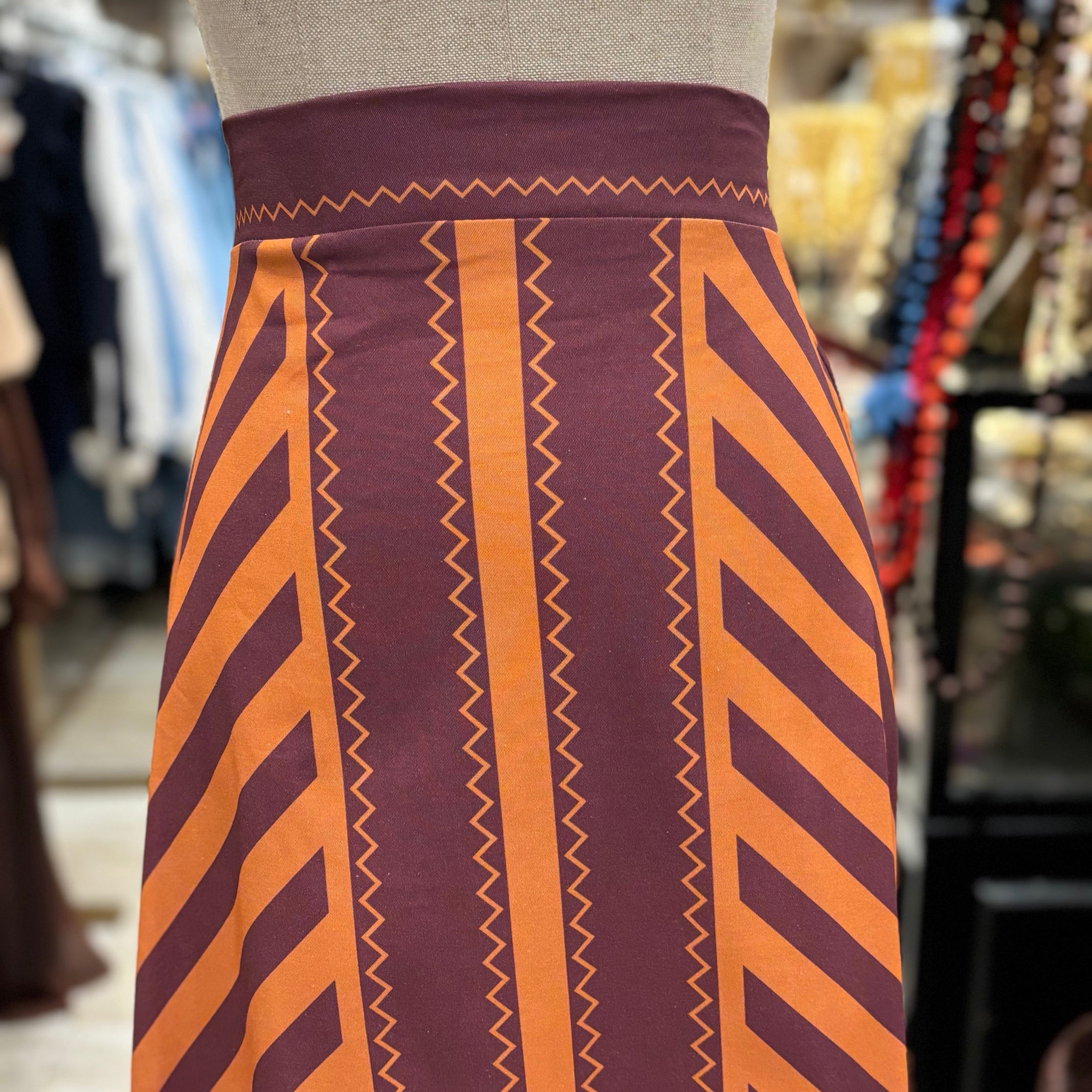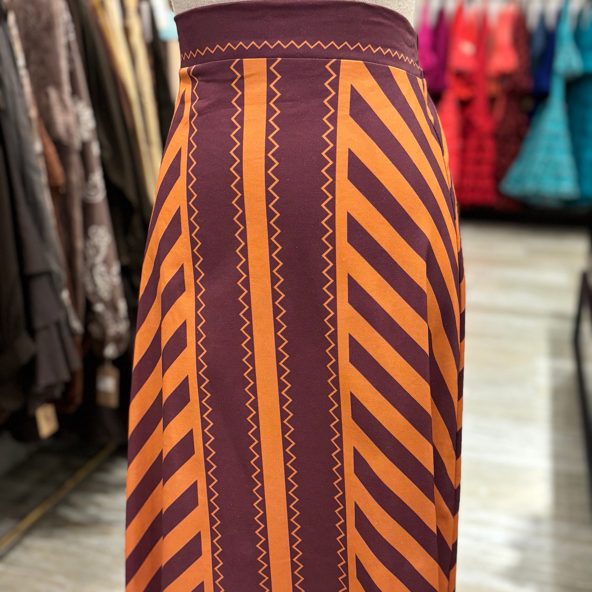 Falda étnica en tonos coral y morado , TALLA UNICA.