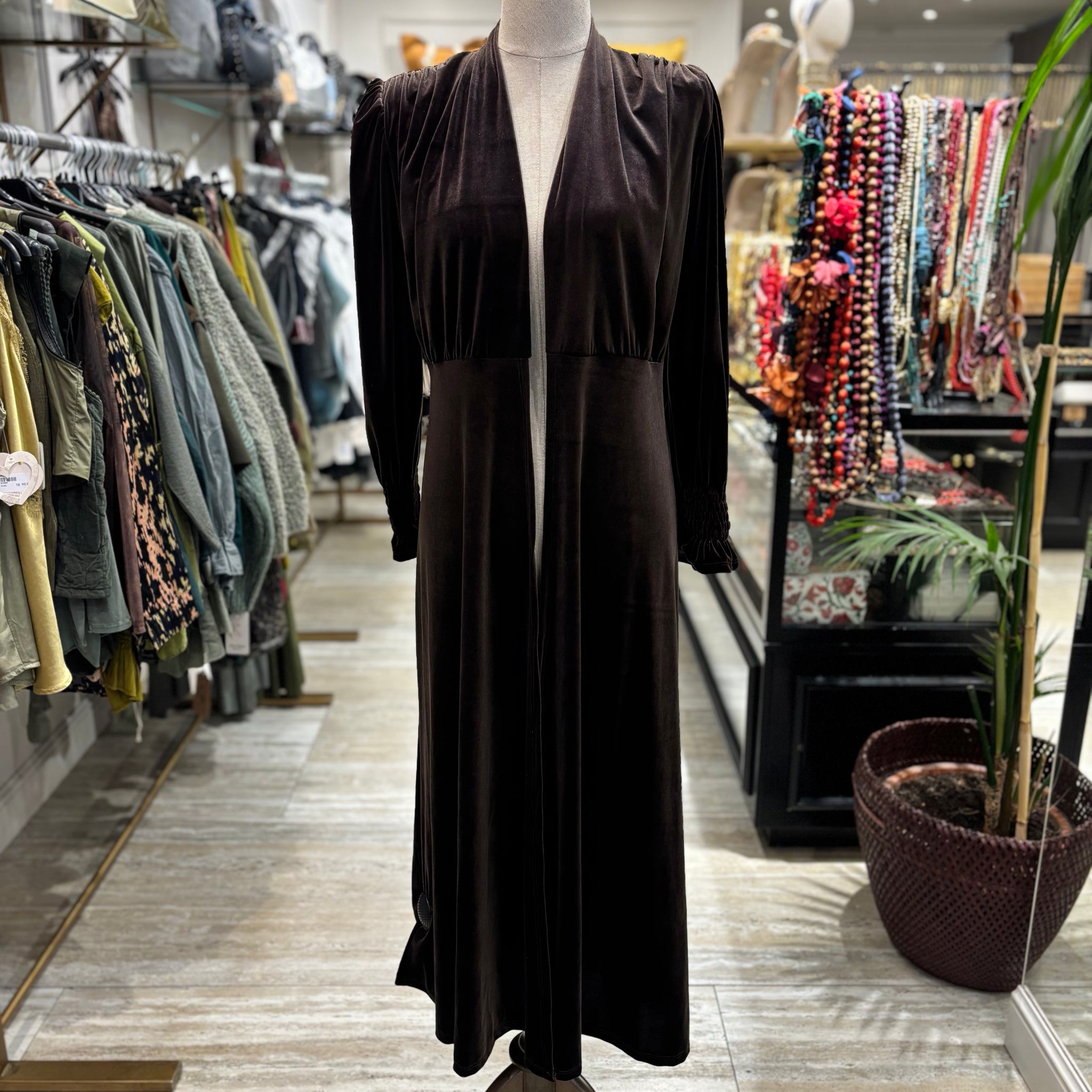 KIMONO DE TERCIOPELO CON MANGA FRUNCIDA MARRÓN