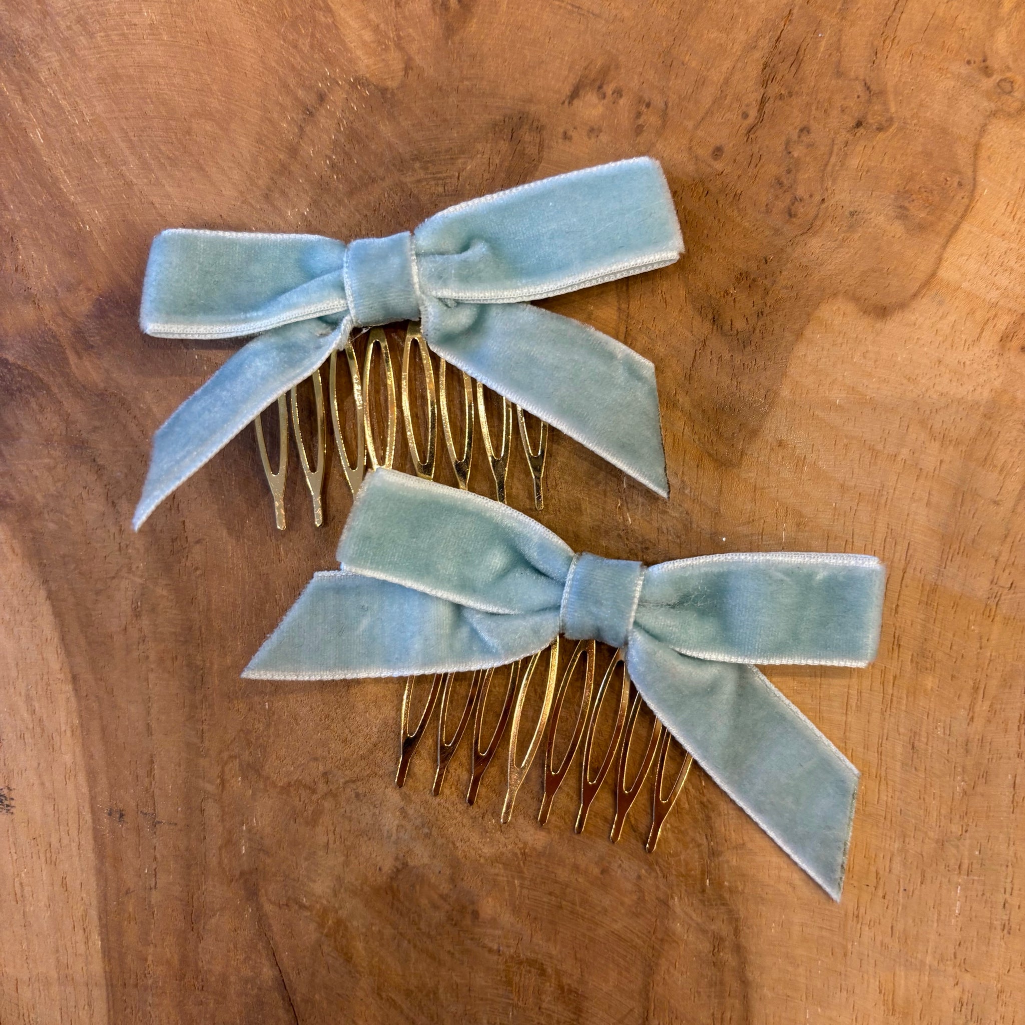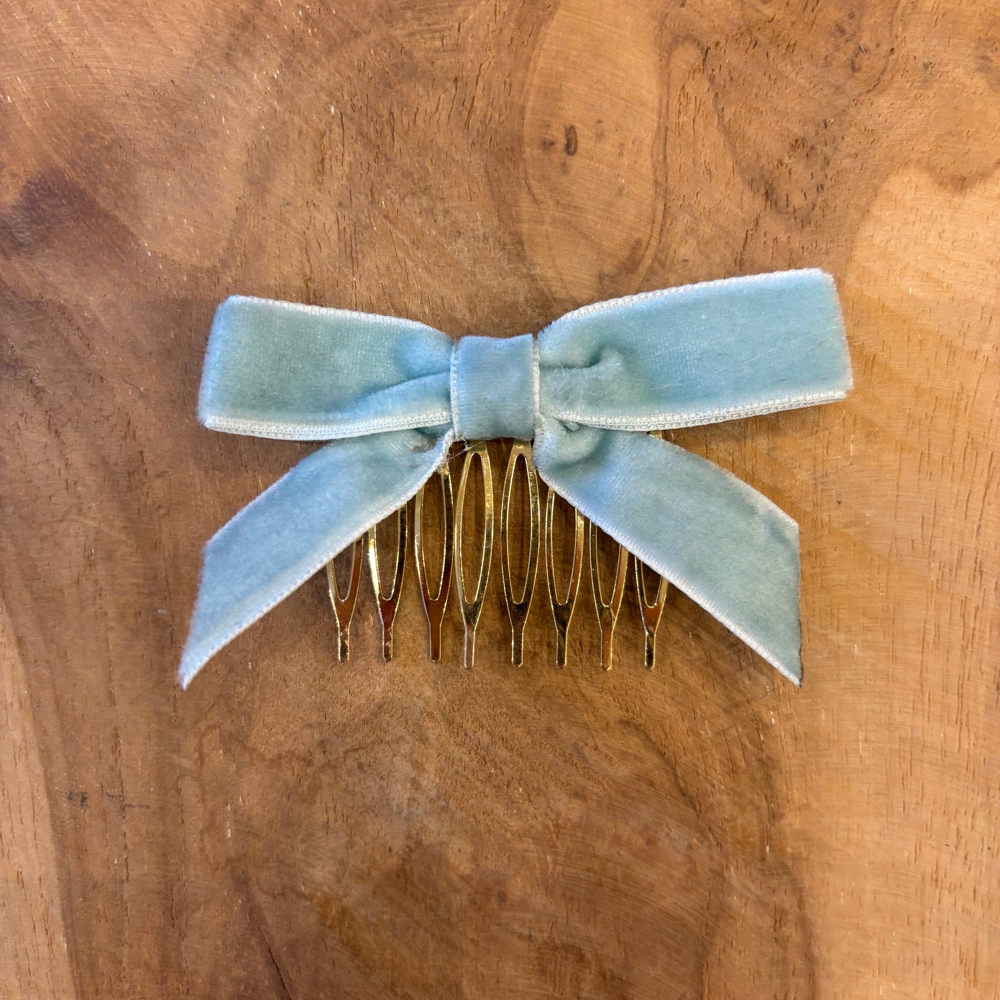 PEINECILLO LAZO DE TERCIOPELO VERDE AGUA