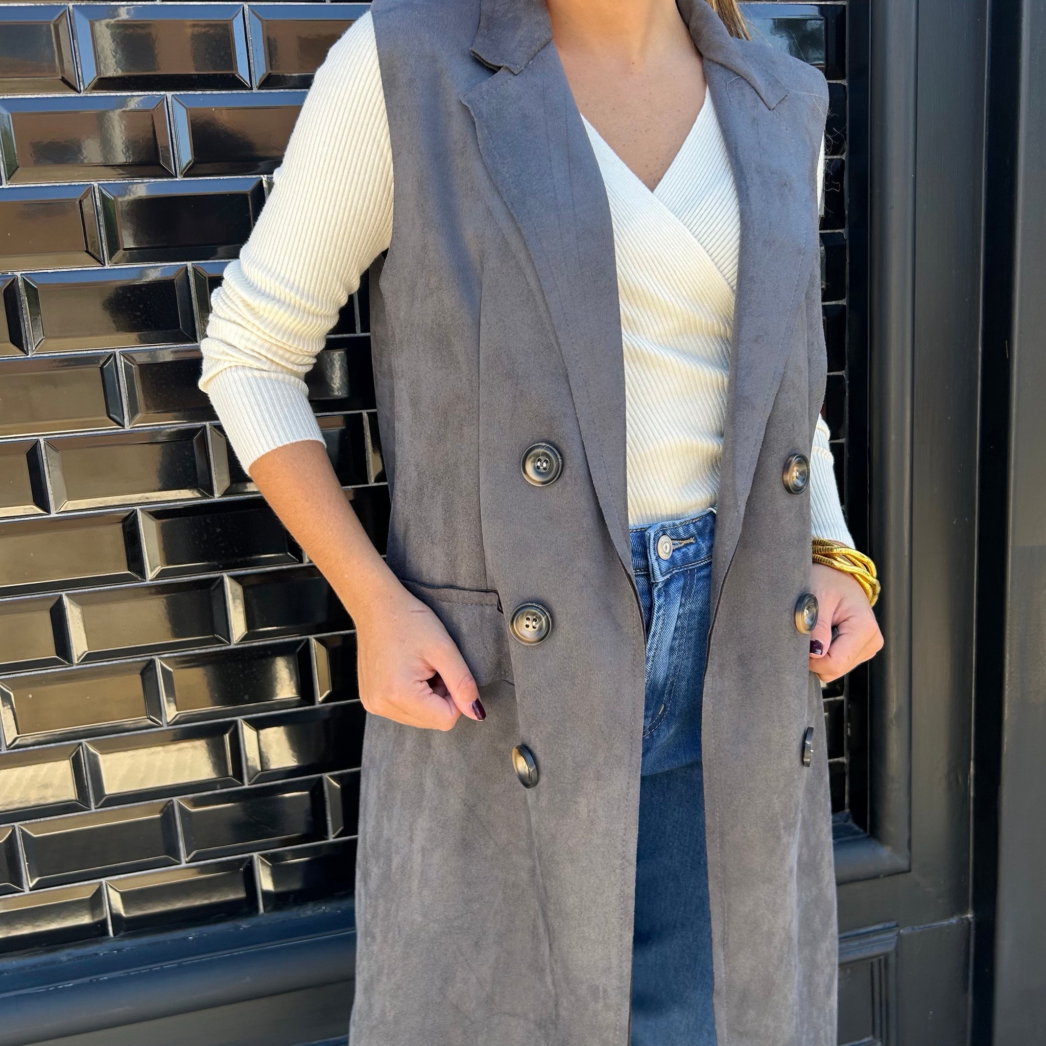 Chaleco de sisa a sisa 52 cm, largo 90 cm ( aproximadamente).